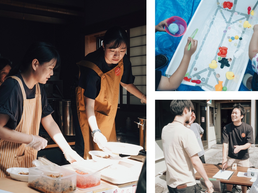 青空が広がった9月末の日曜日。昨年から新設した川端三丁目の事務所敷地で始めた「つむぎマルシェ×地域食堂」に次々と人が集まってきた。2カ月に一度開催。スタッフやその家族、地域の人らが得意なことややりたいことで出店し、飲食ブースや物販が楽しめるイベントになっている。