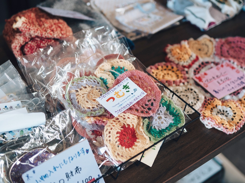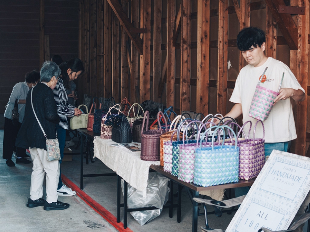 スタッフの田中圭介さんは、母が製作したクラフトバッグを販売し、「もともと地域に貢献したい気持ちがあったので、マルシェをすると聞いてワクワクしました。少しずつ壁がない社会づくりが進んでいけばいいなと思います」と話した。