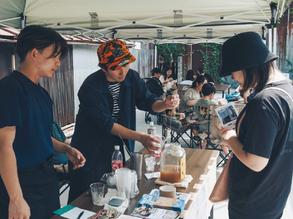 日ノ丸温泉は、数回にわたって足湯を提供。鳥取大学生でスタッフの國清晃生さんと谷川智彦さんは手作りジンジャエールを販売。「こういう場があると、大学ではない出会いがあったり、地域のことを知れたりする。どんどん人が増え、にぎやかになってきたと思います」と笑顔を見せた。